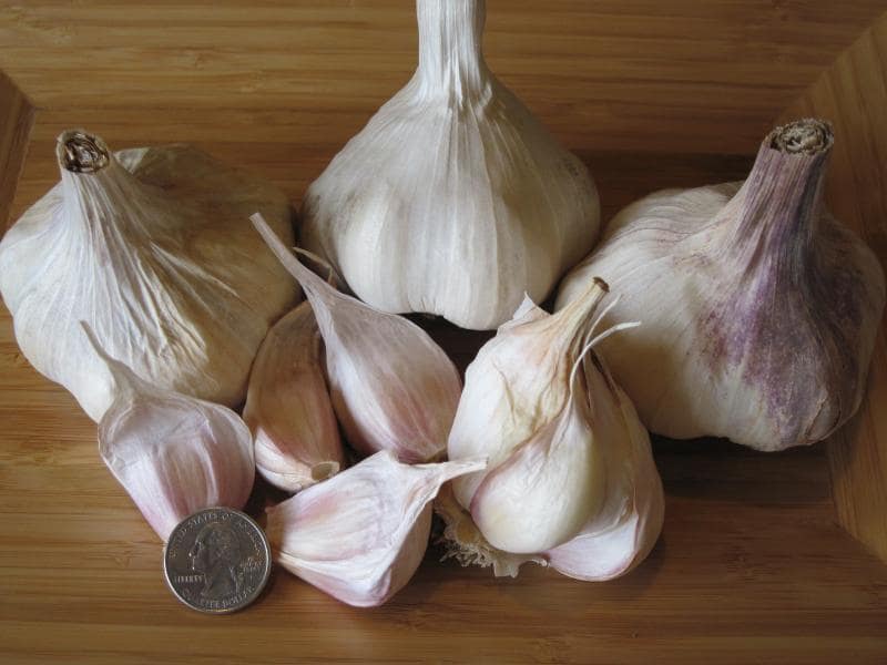 Another excellent garlic that has become a classic. This spicy long-time favorite of gourmet cooks, and gardeners is easy to grow and stores well. It is also good for braiding. Early Italian produces extra large white bulbs with purple streaks, and will have about 15 to 20 light purple striped cloves. Approximately 70 to 80 Cloves per Pound. This is one of the biggest varieties that we grow!