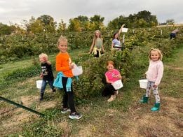 This is a working farm and activities are held in a field. There are outhouses but no running water. Pop and water bottles are available for purchase. Children should dress appropriately for activities and could get dirty. Weather can change quickly in the fall, so access to hats, coats, and gloves is recommended!